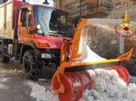 Neve: mezzi dell’Esercito e Vigili del Fuoco al lavoro