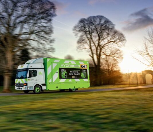 Motore a idrogeno JCB su un camion Mercedes