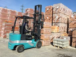 Una Derrick 200 DR 5/10 Litronic di Liebherr sul tetto