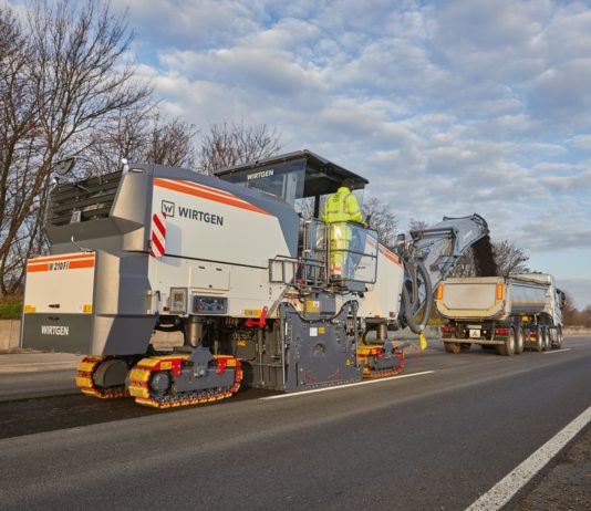 La Super 2100-3 di Vögele al lavoro ad Amburgo