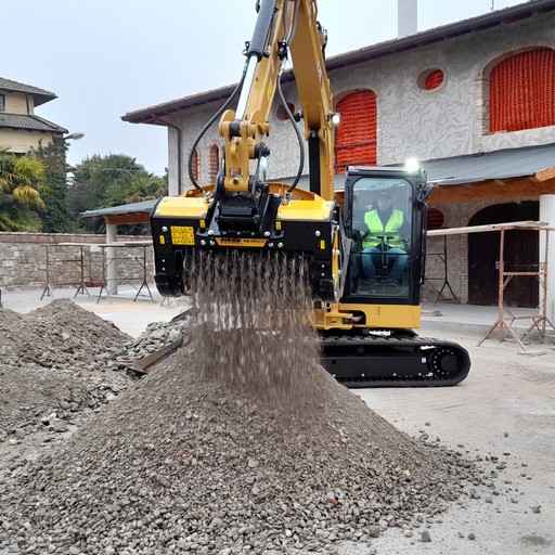 Farlo a mano sarebbe una follia, ci vorrebbe l’intera giornata. Meglio usare la benna selezionatrice a rotori o la benna vagliante a cesto di MB, a seconda del lavoro da fare.