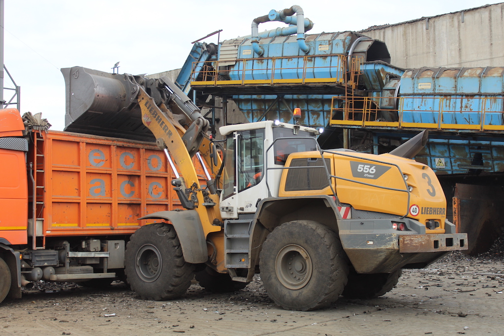 Ma nell’impianto è attiva anche la L 556 XPower, la “mano” che smista il materiale, la il “motore logistico” dell’impianto. Dotata di un peso operativo di 19.600–21.600 kg e di un carico di ribaltamento fino a 13.750 kg, è progettata per garantire costanza di rendimento nei cicli di carico e trasporto ad alta frequenza, tipici dei piazzali del rottame.