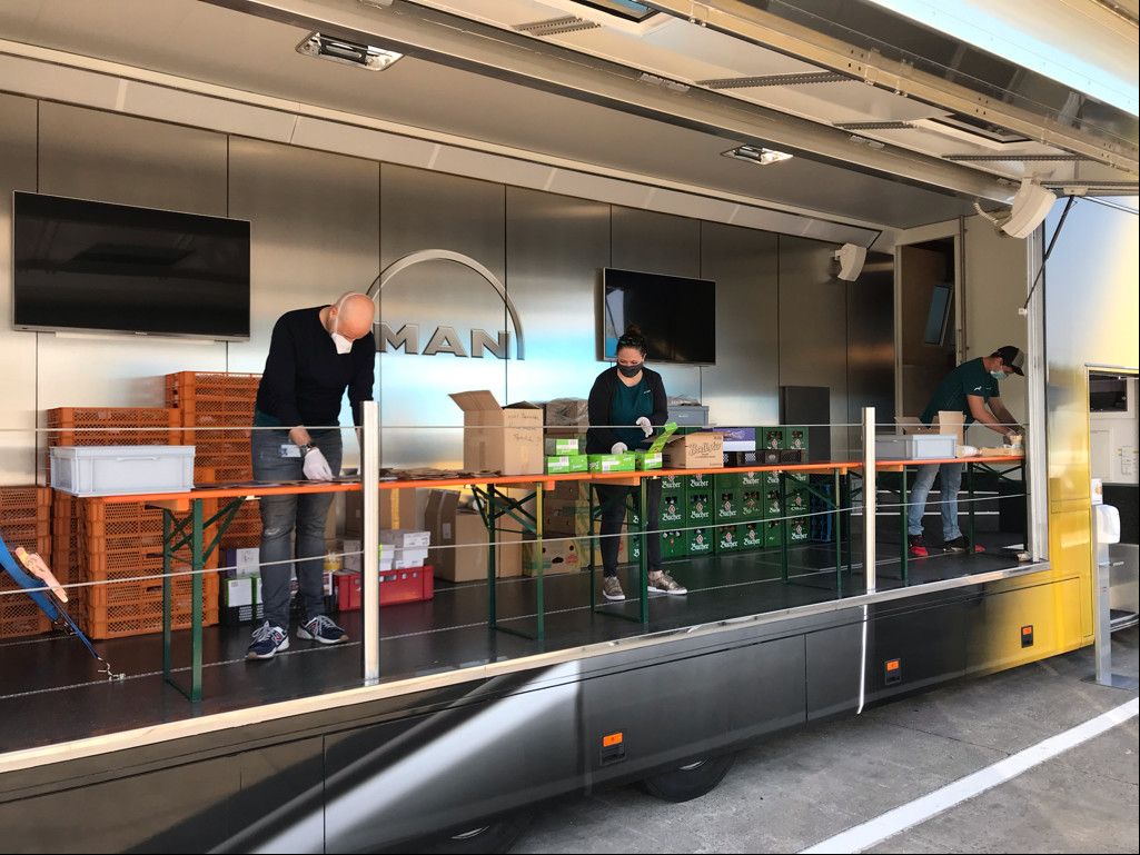 Al motto di “MAN vi dice Grazie” il team MAN ProfiDrive, generalmente impegnato nella gestione dei corsi di guida presso le aziende clienti, già aveva volontariamente dedicato due giornate alla distribuzione gratuita di più di 1000 buste con il pranzo a tutti gli autisti presenti nell’area di sosta degli snodi autostradali A8 e A9 in prossimità di Monaco di Baviera.