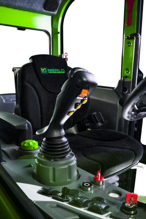 L’accesso alla cabina è facilitato da una porta apribile a 180° e da gradini e maniglie strategicamente posizionati. Il joystick elettronico capacitivo permette di gestire fino a quattro movimenti idraulici indipendenti sull’attrezzo, garantendo operazioni rapide e precise, riducendo l’affaticamento dell’operatore.