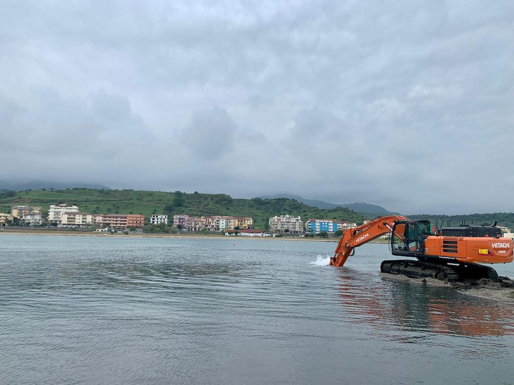 Lo ZX350-7 Hitachi del gruppo è stato utilizzato per i lavori di scavo nell’area portuale di Cariati Marina, dove si è reso necessario operare a profondità superiori rispetto alla configurazione standard della macchina.