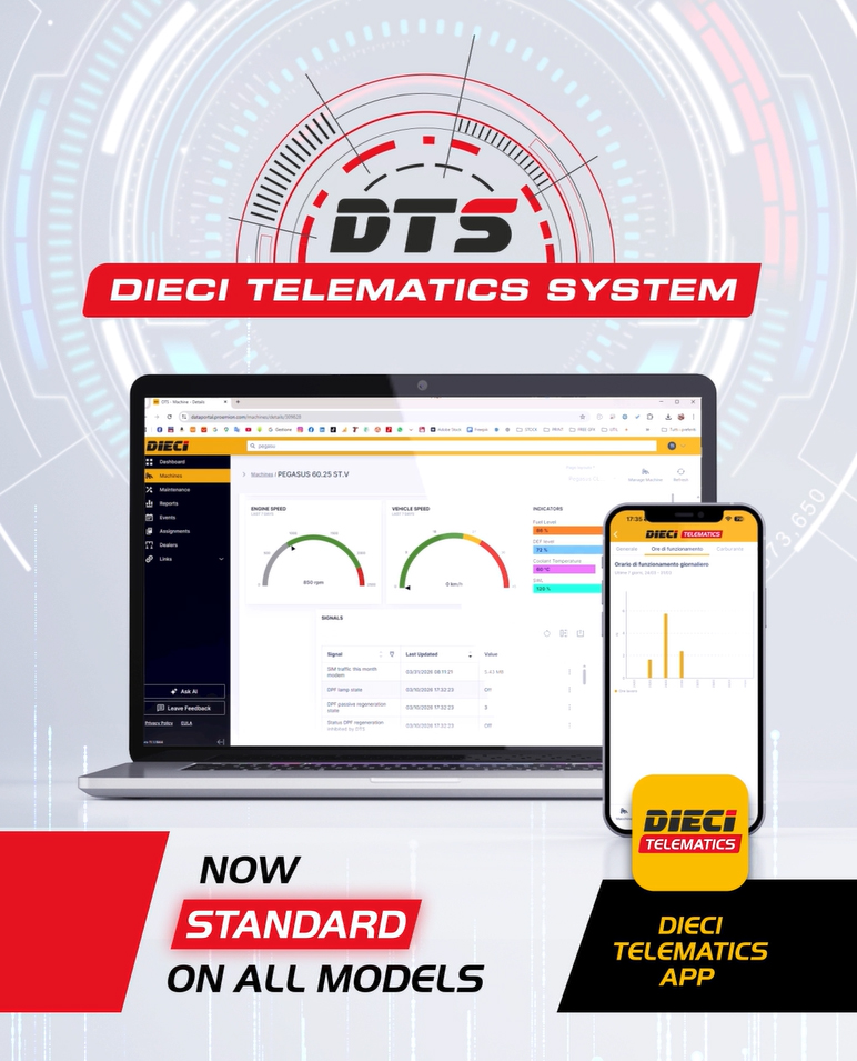 Oltre alle macchine, il team Dieci sarà a disposizione per mostrare alcune novità legate al Dieci Telematic System (DTS), l’esclusivo software (ora anche in versione app) che consente di monitorare e gestire da remoto la propria flotta. Una soluzione avanzata, ora ancora più integrata, progettata per il settore del noleggio e per tutte le aziende che desiderano ottimizzare la gestione del proprio parco macchine attraverso strumenti innovativi.