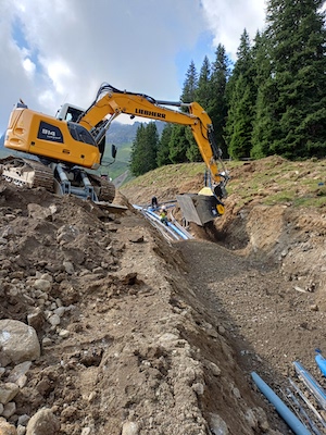 - Lo scavo della trincea per la nuova conduttura dell’innevamento programmato (acqua, aria ed elettricità), lunga circa 700 metri.