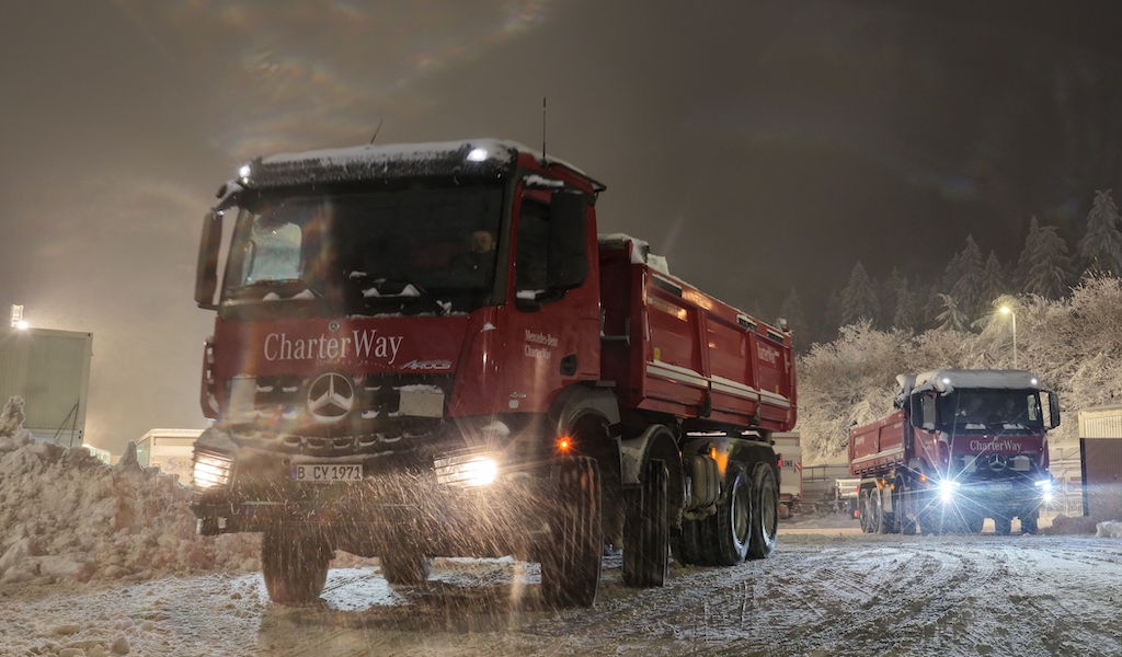 Durante la Coppa del Mondo di Oberhof (Turingia), i camion ribaltabili Mercedes-Benz Arocs della flotta a noleggio CharterWay sono stati impiegati per rimuovere la neve e sgomberare ampie superfici. Anche dopo la conclusione delle gare di Coppa del Mondo, i veicoli sono rimasti in servizio, supportando gli eventi studenteschi e giovanili attualmente in corso.
