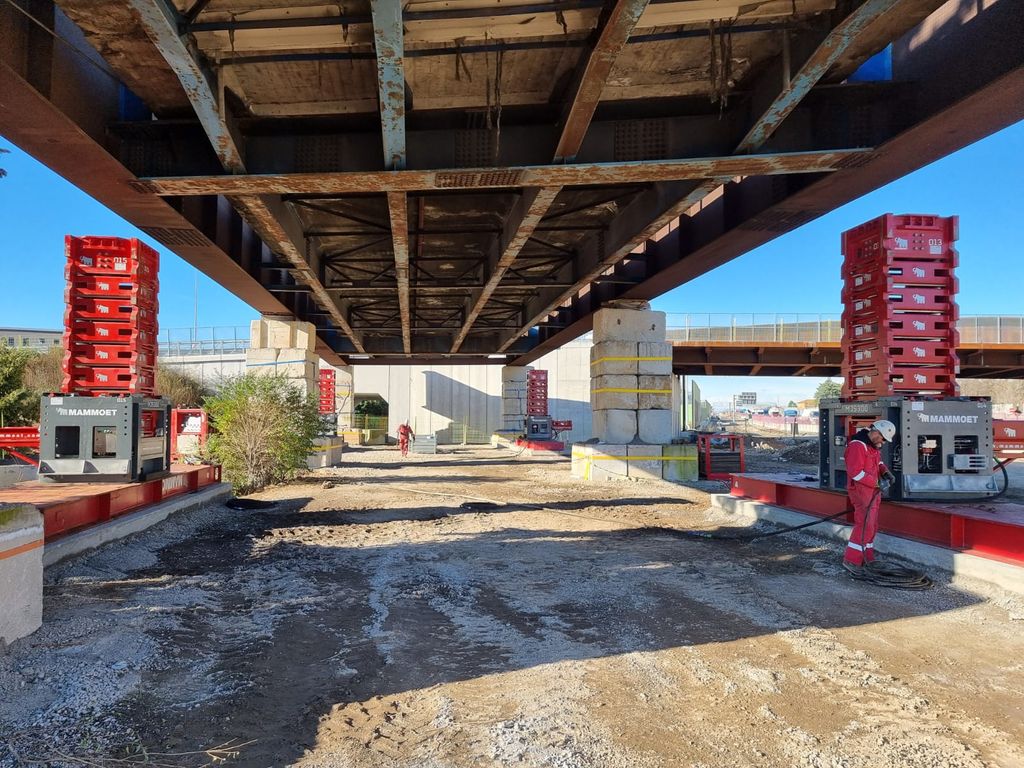 Al fine di ridurre al minimo i rischi durante la fase di smantellamento dell’impalcato, il committente ha quindi richiesto a Mammoet di abbassare sul posto il sovrappasso dismesso, portandolo ad una quota che garantisse elevati standard di sicurezza durante le successive operazioni di demolizione.