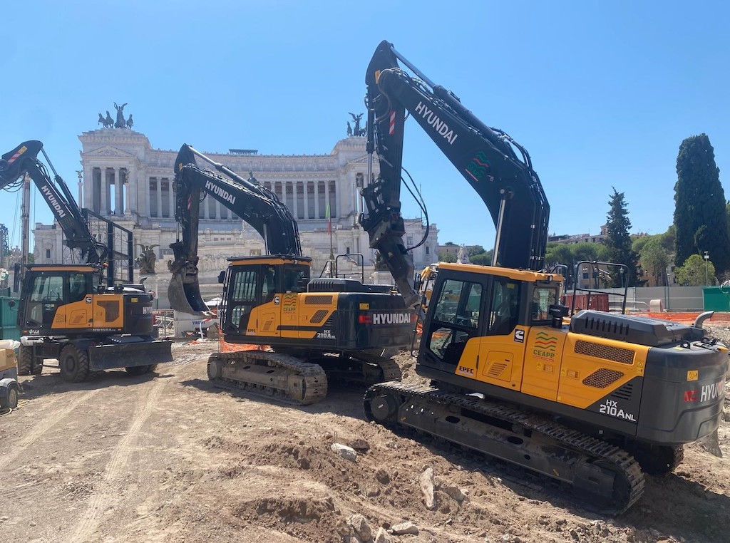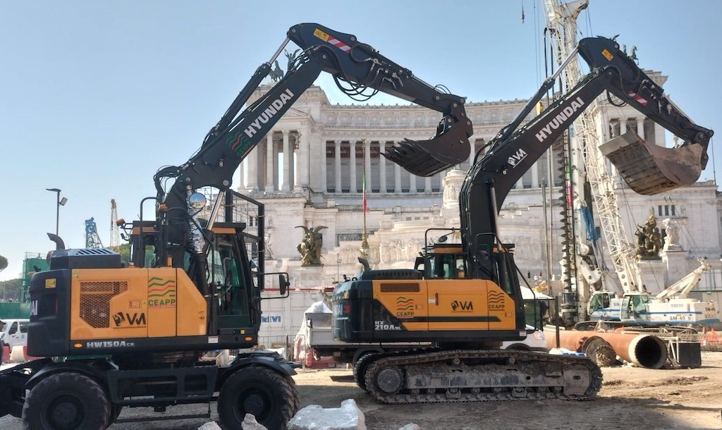 “Nel cantiere della linea C di Piazza Venezia sono presenti tre escavatori Hyundai, i modelli HX210A e il modello HW150A che si stanno occupando degli scavi per la realizzazione delle solette di copertura. Sono macchine performanti, sicure e precise. Prima dell’acquisto le abbiamo testate e confrontate con modelli simili di altri competitor ma ci siamo resi conto che, rispetto agli altri mezzi della concorrenza, gli escavatori Hyundai offrono ingombri minori, una maggiore stabilità e prestazioni elevate. Inoltre, avendo due cantieri importanti come quelli di Fori Imperiali e Piazza Venezia, l’escavatore gommato può spostarsi con grande facilità e senza problemi da un cantiere all’altro, senza dover per forza ricorrere ad un carrellone che comporterebbe dispersione di tempo”, ha dichiarato Fabio De Pellegrin.