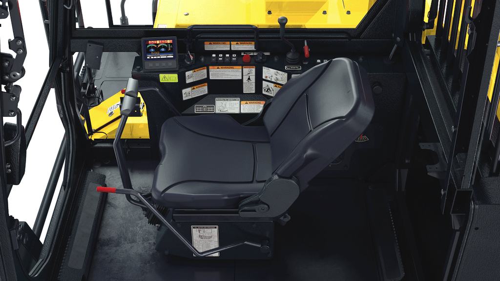 Inoltre, la cabina del trasportatore C50R-5A possiede una caratteristica speciale: la console del sedile reversibile. Infatti, il sedile dell’operatore e le leve di traslazione possono ruotare di 180°. Ciò migliora: il comfort, la sicurezza, la visibilità, la produttività e riduce il rischio di incidenti sul lavoro. Le leve di traslazione sono servoassistite e possono essere azionate facilmente e senza sforzi, riducendo la fatica per dell’operatore ed aumentano sicurezza e comfort. È presente anche un’interfaccia digitale, un grande monitor LCD che permette di visualizzare le informazioni fondamentali dello stato della macchina ed in caso di avarie di un componente, l’operatore sarà informato attraverso le icone dedicate. L’interfaccia digitale informa l’operatore anche sul livello d’intasamento del filtro antiparticolato DPF.