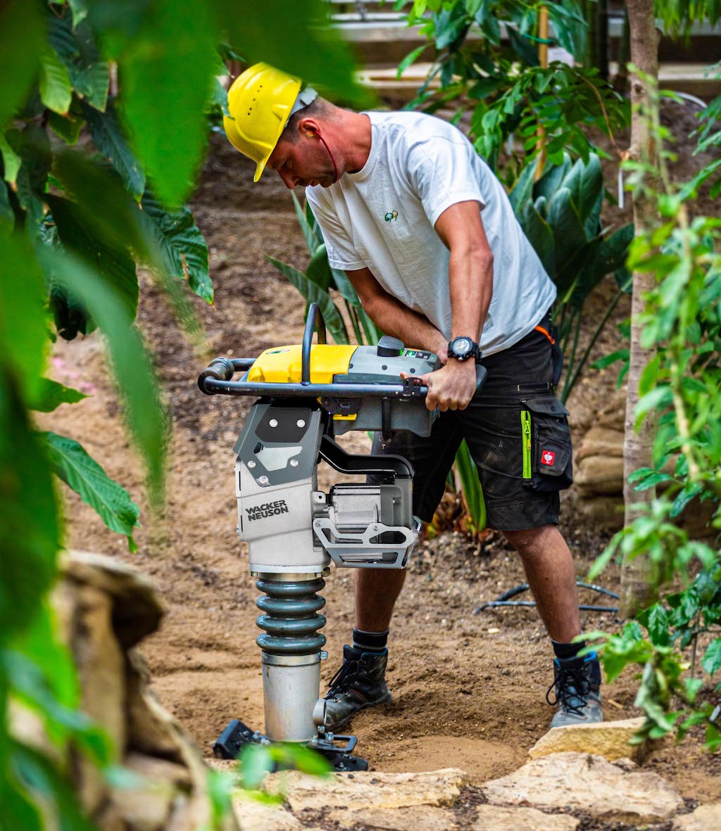 L’azienda Lindenlaub GmbH, giardinaggio e paesaggistica, con sede a Weimar, si occupa della piantumazione del deserto e della giungla. Anche l’amministratore delegato Udo Lindenlaub si affida a Wacker Neuson per questo particolare progetto: “Lavoriamo con Wacker Neuson da quasi 50 anni. Durante questo incarico speciale, abbiamo potuto mettere alla prova noi stessi i macchinari e le attrezzature elettriche per l’edilizia di Wacker Neuson.” Tutti i prodotti della serie a emissioni zero funzionano senza emissioni di scarico e sono estremamente silenziosi e senza compromettere le prestazioni. “In questo modo, da un lato, i dipendenti sono protetti quando lavorano nella Danakil House, perché gli impianti sensibili fanno sì che non sia possibile aprire finestre o porte o utilizzare ventilatori. D’altra parte, le piante sensibili non sono esposte ai gas di scarico e non ci sono danni ”, spiega Udo Lindenlaub. Inoltre: Le macchine e i dispositivi a zero emissioni sono particolarmente facili da usare, forniscono energia sufficiente per una tipica giornata lavorativa e, grazie alle loro dimensioni compatte, possono venire sfruttate in punti nell’ambiente di lavoro angusto.